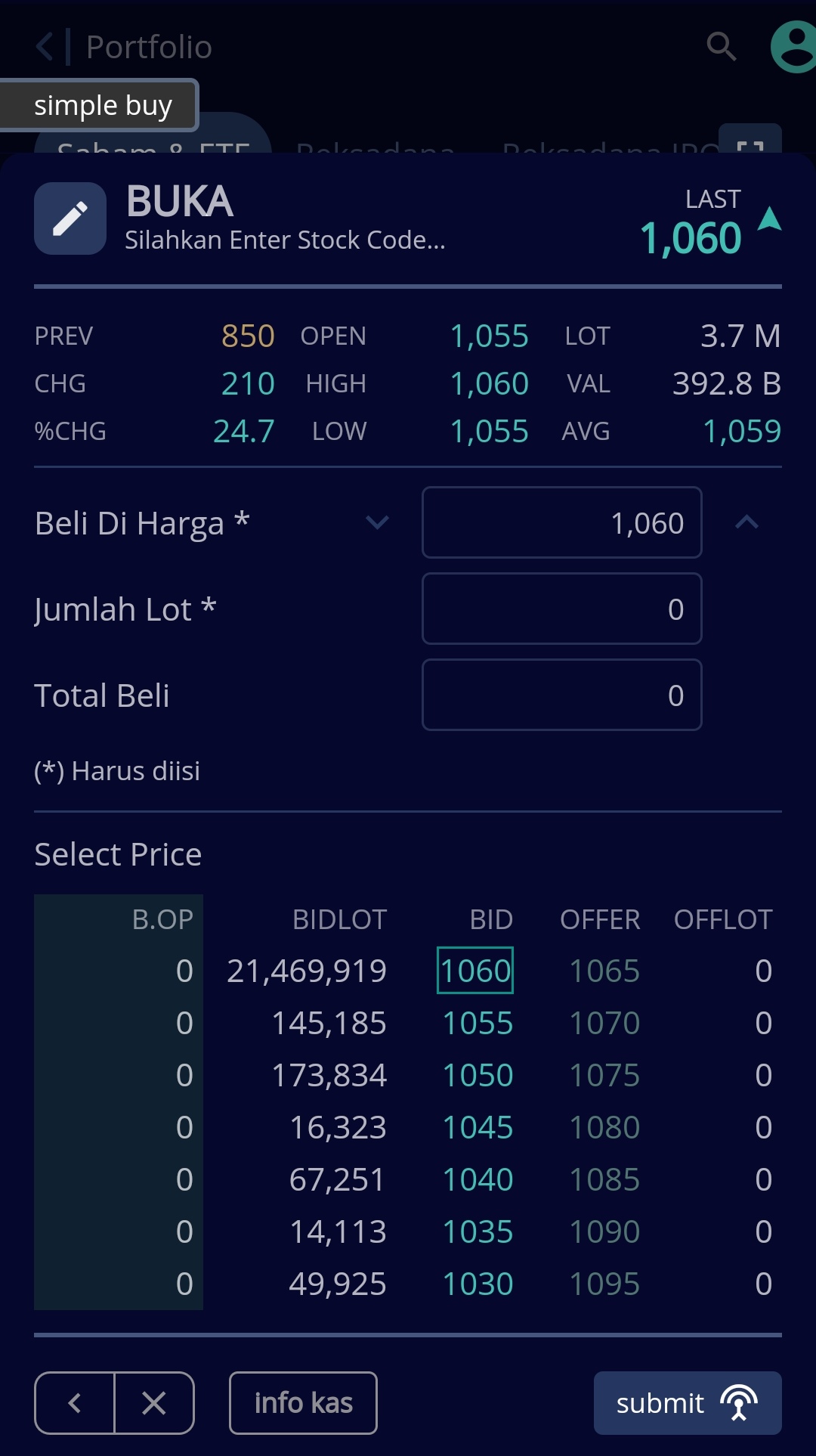 Saham bukalapak terpantau naik 24,71 persen dalam sesi pencatatan saham perdana, dari rp 850 menjadi rp 1060, atau naik 210 poin. Menerbitkan saham merupakan salah satu pilihan perusahaan ketika memutuskan untuk pendanaan perusahaan. Berikut ini juga petunjuk untuk belajar saham online. Langkah awal untuk memulai investasi saham adalah membuka rekening saham. Syarat dan cara membuka rekening di mirae asset.